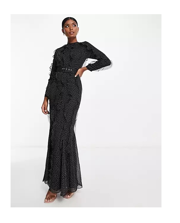 Hot deal! Get this Long Sleeve Ruffle Detail Maxi Dress in Black Based Mono Spot for only $135! Plus, this Long Sleeve Ruffle Detail Maxi Dress in Black Based Mono Spot ships free! Don't forget to enter the coupon code above at checkout to get this sale price! Run! Get it before it's too late! Want more? Here are some similar deals — Miu Miu Crystal-embellished Velvet-trimmed Lace Gown for $2140 and this Prada Belted Polka-dot Cupro and Silk-blend Chiffon Midi Dress for $1985. For more deals on Women's Dresses click here.