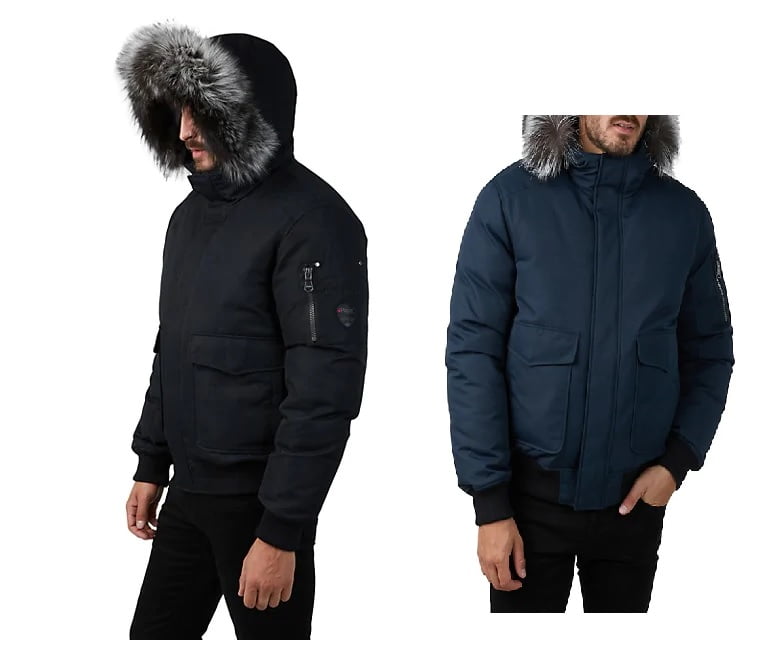 This winter-ready bomber jacket features plush fox fur trim and down fill for added warmth.