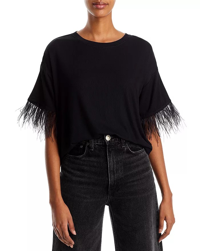 Great offer! Get this Feather Trim Tee for only $51! That's 25% off regular price! Plus, this Feather Trim Tee ships free! Get it before it sells out! Not what your'e looking for? Check these out — BCBGMaxazria Metallic Mockneck Knit Top for $50 and this BCBGMaxazria Floral Top for $40. If you like deals and sales on Lucy Paris Women's Tops, follow us on Instagram to get notified of the latest deals! For more deals on Women's Tops click here.