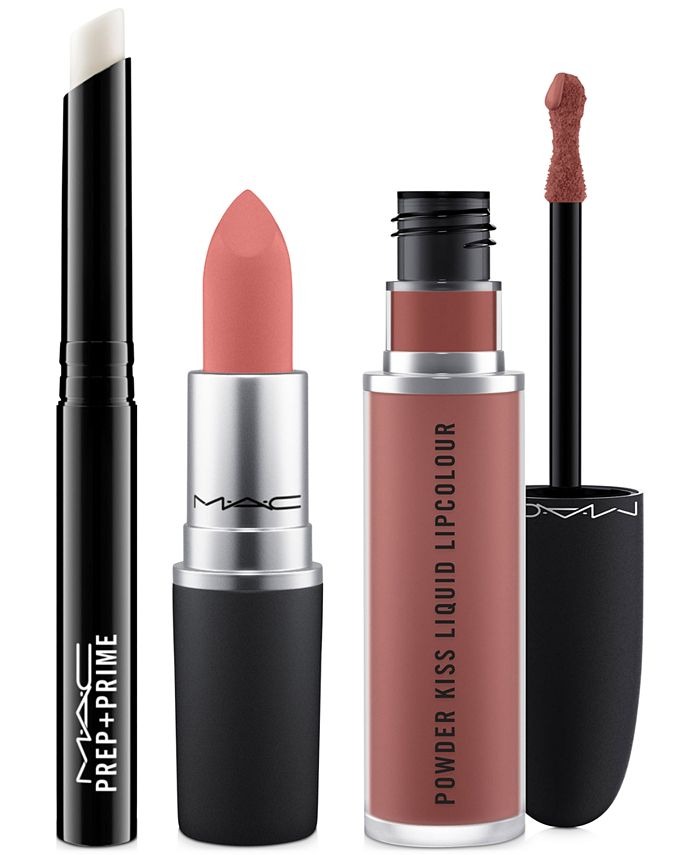 Here's the deal - Get this 3-Pc. Prep + Powder Kiss Lip Set - Bold, for only $20! That's 70% off regular price! Get it before it sells out! Want more? Here are some similar deals — Tan Luxe Self Tanner Serums for 25-$39 and this Stila 3-Pc. Triple Play Stay All Day Liquid Lipstick & Eye Liner Set for $14. If you like deals and sales on Mac Cosmetics, follow us on Instagram to get notified of the latest deals! For more deals on Cosmetics click here.