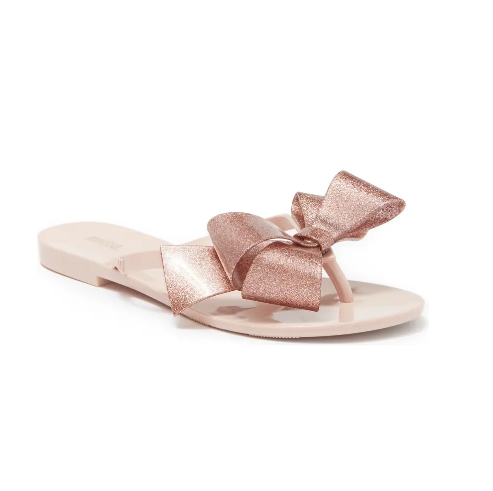 An oversize metallic bow sparkles atop a simple flip-flop molded from fruit-scented PVC. Whole sizes only; for 1/2 sizes, order next size up. - MELFLEX PVC upper, lining and sole - MELFLEXβ’ PVC is durable, flexible, hypoallergenic and recyclable - Made in Brazil - Women's Shoes