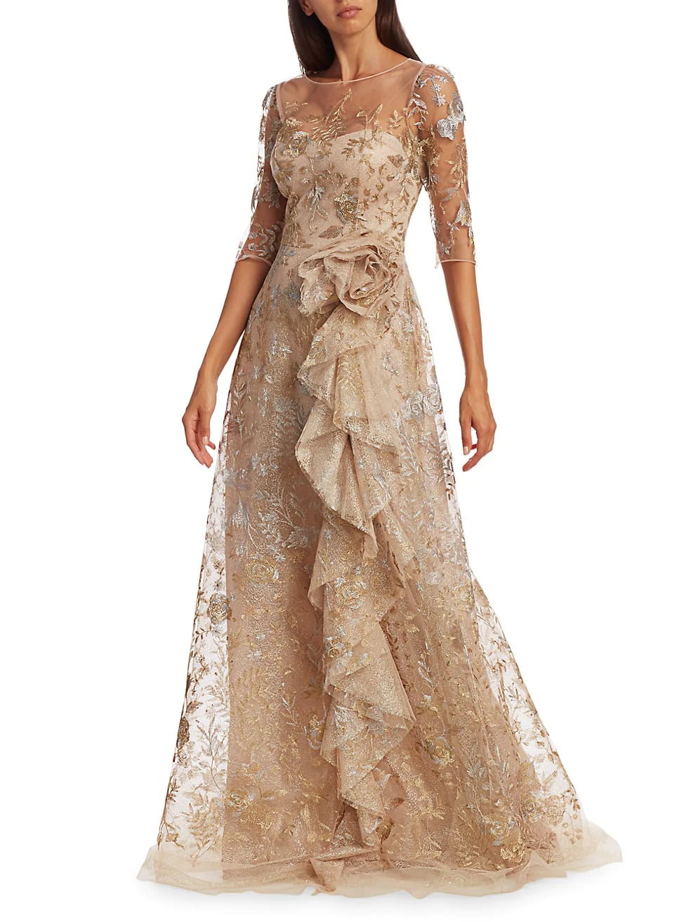 You'll love this deal! Get this Rickie Freeman for Teri Jon Metallic Floral Illusion Tulle Side Ruffle A-Line Gown for only $506! That's 63% off regular price! Plus, Metallic Floral Illusion Tulle Side Ruffle A-Line Gown ships free! Hurry - Only a few left! If you like deals and sales on Rickie Freeman for Teri Jon Women's Dresses, follow us on Instagram to get notified of the latest deals! For more deals on Women's Dresses click here.