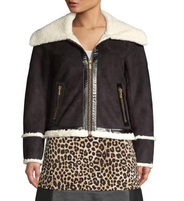 Check this out! Get this Michael Kors Faux Shearling Jacket for only $88.5! That's 70% off regular price! Shop now before it sells out! For more deals on Women's Outerwear click here.Framed with an oversized collar, this boxy moto jacket is finished with a suede-like texture and faux shearling trim.