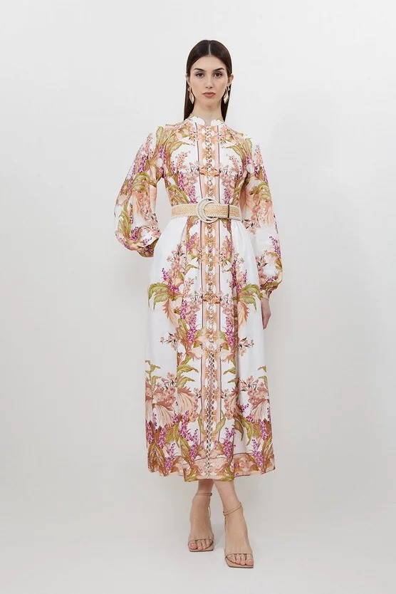 Great deal! Get Mirrored Floral Viscose Linen Button Down Midi Dress for only $379! That's 15% off regular price! Get it before it sells out!