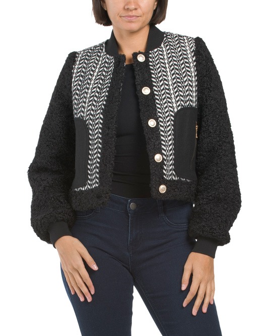 Awesome deal! Get Mixed Media Bomber Jacket for only $50! That's 38% off regular price! Shop now before it sells out!