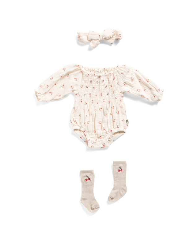Great deal! Get Newborn Girls Cherry Gauze Bubble Set with Socks and Headband 0-9m for only $13! Will sell out fast!