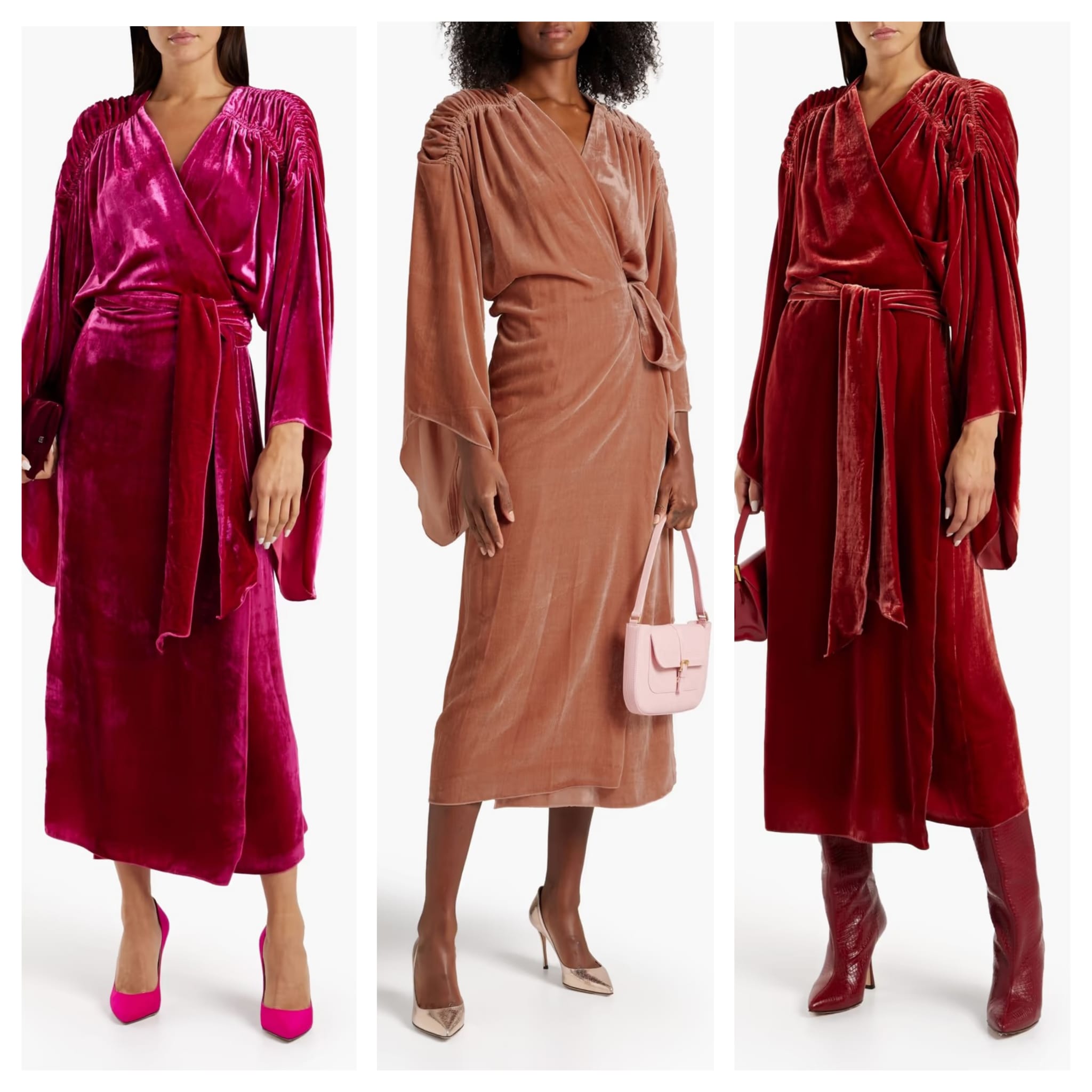 Here's the deal - Get Olina ruched velvet midi wrap dress for only $727! That's 60% off regular price! Plus, Olina ruched velvet midi wrap dress ships free! Run! Get it before it's too late!