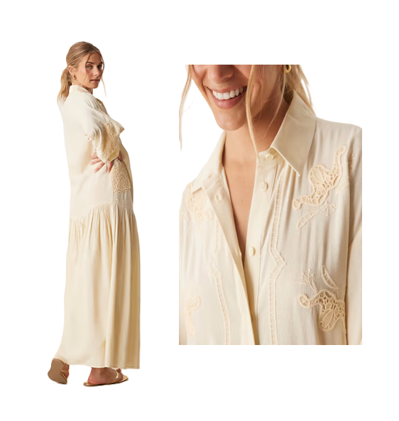 Hot deal! Get Oversized Shirt Dress with Volume Sleeve and Cutwork in Ecru for only $95! Shop now before it sells out!
