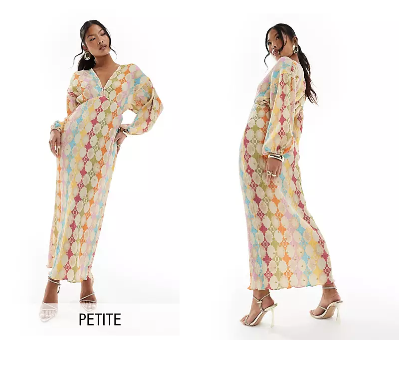 Hot!! Get Petite Flared Sleeve Maxi Dress in Bright Geo Print for only $224! Will sell out fast!
