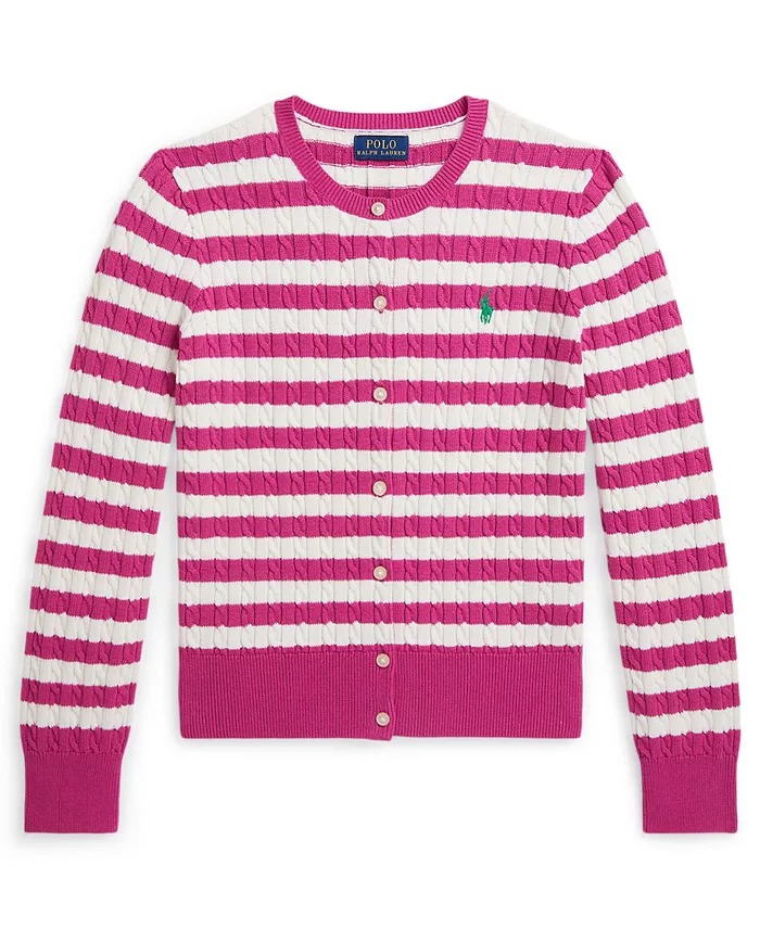 Hey there! If you've got a fashion-forward kiddo in your life, check out this Polo Ralph Lauren Girls' 7-16 Striped Mini-cable Cardigan. It's priced at just $30, slashing that original $75 price by a whopping 60%! I mean, that’s like finding a forgotten twenty in your pocket-surprising and delightful. This cozy cardigan features cute mini cables and stripes, perfect for staying warm while still rocking that stylish vibe. Plus, did I mention it ships free? Score! So, don’t let this deal pass you by. Your kiddo will thank you… and so will your wallet!Want more? Here are some similar deals Little Girls 2pc Cardigan and Skirt Set Size 4-7 for $17 and this Kids' Stripe Cable Stitch Cardigan for $42. If you like deals and sales on Polo Ralph Lauren Kid's Sweaters, follow us on Instagram to get notified of the latest deals! For more deals on Kid's Sweaters click here.