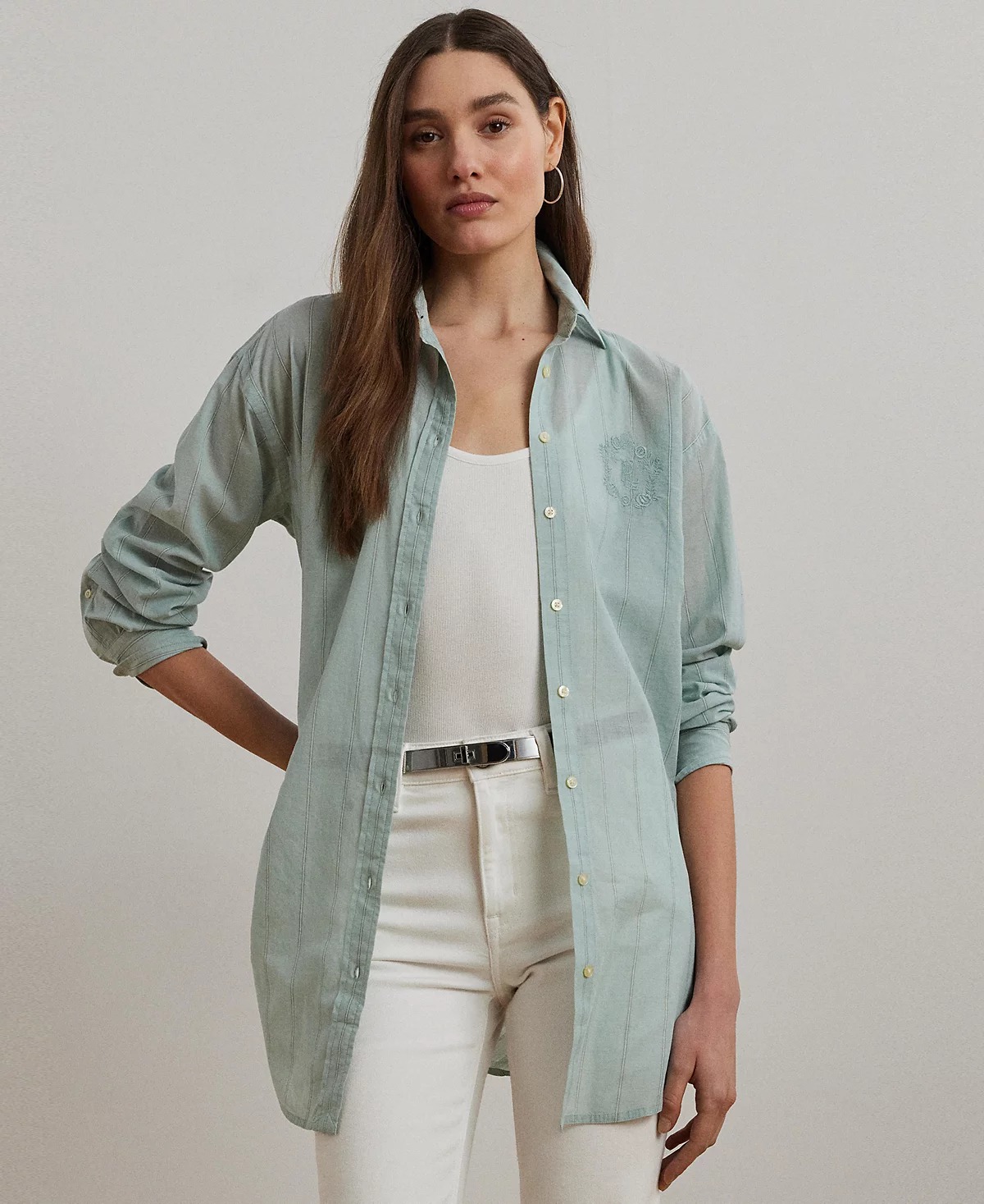 Hey there, fashionistas! Check out this Polo Ralph Lauren Women’s Oversize Striped Cotton Voile Shirt that's practically begging to make your wardrobe pop. At just $61 (originally $145), this beauty is a whopping 58% off, which means more cash for those brunch mimosas! 🍾 The soft cotton voile will keep you breezy and chic while you strut your stuff, whether you're on a coffee run or hitting up the farmers' market. Plus, it ships for free, so it’s like a bonus gift from your shopping gods. Just imagine how cute you’ll look while pretending to be the ultimate swank master. Go on, grab this steal before it's gone!. Not what you're looking for? Check these out All Yours Long-sleeve Shirt for $39 and this Pima Cotton Blend Long Sleeve Tiny Tee for $40. If you like deals and sales on Polo Ralph Lauren Women's Tops, follow us on Instagram to get notified of the latest deals! For more deals on Women's Tops click here.