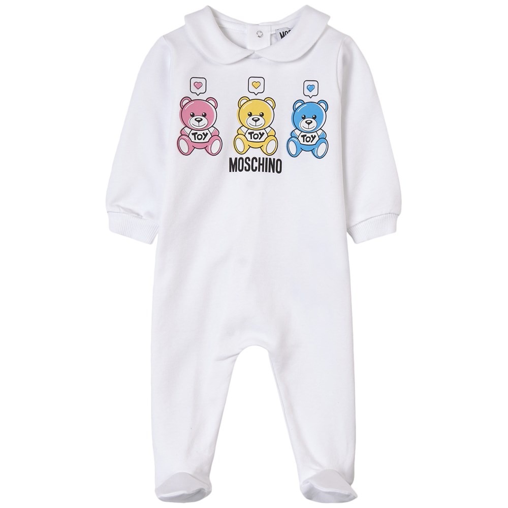 Check this out! Get this Moschino Printed Footed Baby Body White for only $83! That's 50% off regular price! Shop now before it sells out! If you like deals and sales on Moschino Kids Clothing, follow us on Instagram to get notified of the latest deals! For more deals on Kids Clothing click here.