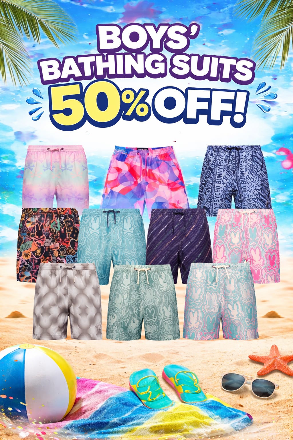 Hey there, savvy shoppers! If your little guy is ready to make waves this summer, check out this Psycho Bunny Boys Bathing Suits deal at a splish-splashing 50% off! That's a sweet savings of $30-$35, folks. These suits are not just stylish; they’re perfect for making cannonballs that’ll impress all his buddies at the pool. With cool designs that even the pickiest kid will love, he’ll be the talk of the splash zone. Less time worrying about swimwear means more time catching frogs and mastering the art of the belly flop. Score this deal and let the summer fun begin-because nobody’s got time for overpriced swim shorts! Grab them while they last!Here are some similar deals we think you'll enjoy Swimwear and Sandals 40% off for $ and this Handbags Up to 66% off for $. If you like deals and sales on Psycho Bunny Kid's Accessories, follow us on Instagram to get notified of the latest deals! For more deals on Kid's Accessories click here.