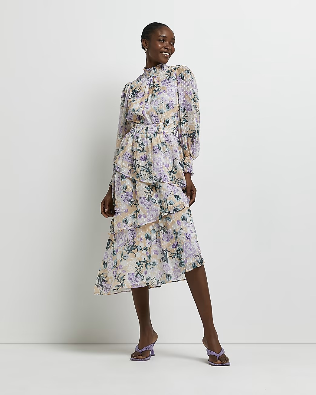Awesome deal! Get PURPLE FLORAL ASYMMETRIC MIDI DRESS for only $56! That's 54% off regular price! Hurry - Only a few left!