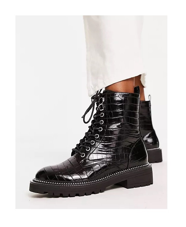 We know you'll love this! Get this Croc Effect Lace Up Boot in Black for only $78! That's 20% off regular price! Plus, this Croc Effect Lace Up Boot in Black ships free! Don't forget to enter the coupon code above at checkout to get this sale price! Will sell out fast! Here are some similar deals we think you'll enjoy — All Saints Women's Dusty Lace Up Ankle Boots for $95 and this Up to 55% off on Sneakers for Up to 55% Off!. If you like deals and sales on River Island Women's Shoes, follow us on Instagram to get notified of the latest deals! For more deals on Women's Shoes click here.