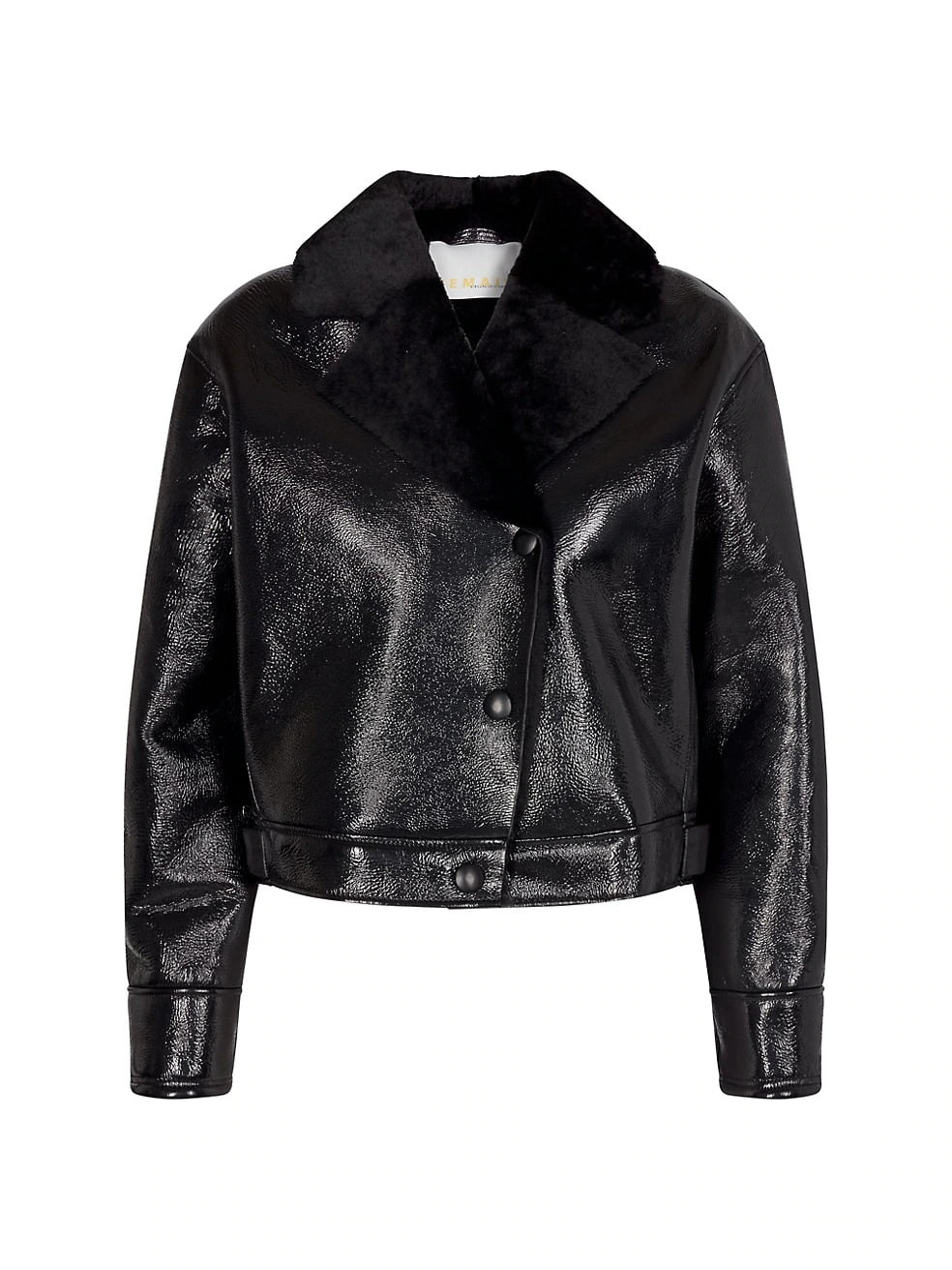 Evoking a luxe, rock-and-roll edge, this glossy leather moto jacket is trimmed with a plush shearling collar.