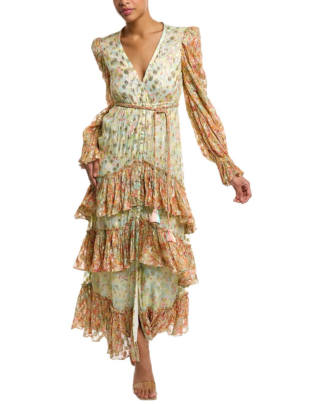 Here's the deal - Get this Metallic Tiered Maxi Dress for only $150! That's 74% off regular price! Plus, this Metallic Tiered Maxi Dress ships free! Shop now before it sells out! Like this deal? Here are some similar ones — Zimmermann Devi Placed Paisley Balloon Sleeve Cotton Wrap Dress for $425 and this Proenza Schouler Pleated Long Sleeve Poplin Midi Dress for $322. If you like deals and sales on ROCOCO SAND Women's Dresses, follow us on Instagram to get notified of the latest deals! For more deals on Women's Dresses click here.