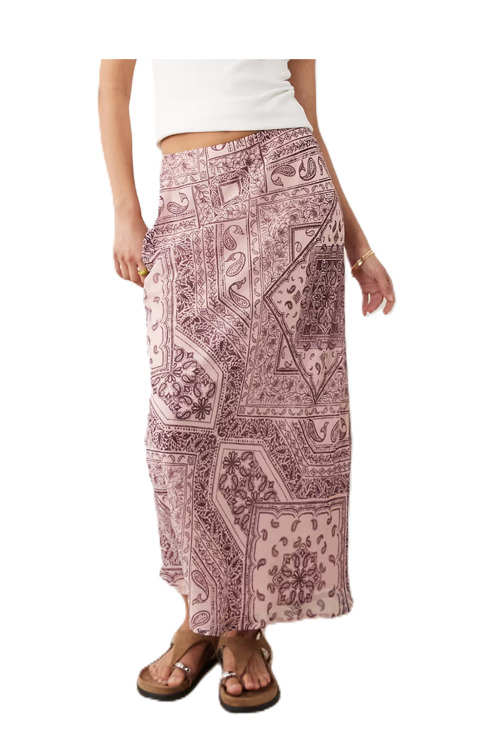 Hey fashionistas! Check out this fabulous Satin Bias Cut Midaxi Skirt in a playful Pink Paisley Print. Seriously, it’s like a party for your lower half! At just $46, you’re getting a steal because it looks like a high-end piece without the luxury price tag. Perfect for twirling around at that weekend brunch or a cute outing, this skirt does the trick. The satin fabric? Super smooth, just like your favorite jam on toast. Pair it with a tucked-in tee for an effortless vibe or dress it up for special occasions. Don’t sleep on this deal; your wardrobe will thank you later!Not what you're looking for? Check these out Laddie Skirt for $177 and this Godet Midi Skirt Trf for $60. For more deals on Women's Skirts click here.