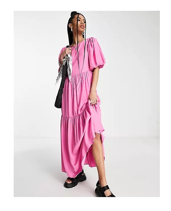 We know you'll like this- Get satin tie back tiered maxi dress in bright pink for only $91! Plus, satin tie back tiered maxi dress in bright pink ships free! Hurry - Only a few left!