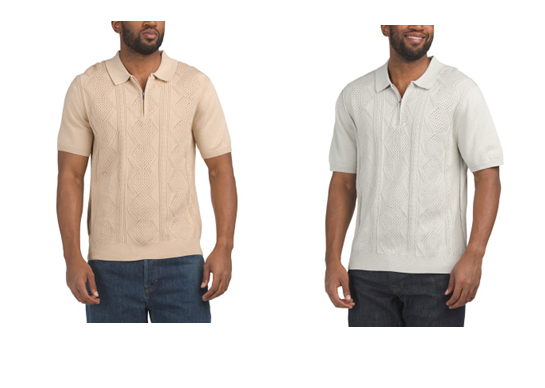 Great deal! Get Short Sleeve Quarter Zip Cable Knit Polo for only $25! Run! Get it before it's too late!