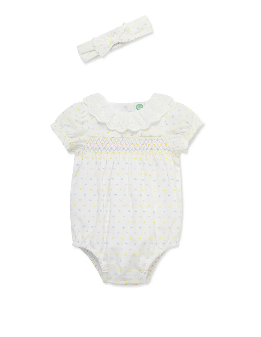 Alright, listen up, savvy parents! If you’ve got a little one in the 3-12 month window, the Smocked Bubble Dot Romper & Headband Set is just what you need for those adorable photo ops. It’s like a fashionable hug for your baby, and guess what? It’s only $18, slashed from $36! That’s a whopping 50% off. Seriously, this deal is like finding a hidden stash of cookies – pure joy! The matching headband adds that extra touch of cuteness, making your tiny tot the star of playdates. Perfect for twirls, giggles, and all the cuddles. Don’t let this one slip through your fingers!Want more? Here are some similar deals Hydrangea Knit Romper & Headband Set 3-12m for $16 and this Cora Blush Flower Switt Dot Bodysuit 0-24m for $38. For more deals on Baby Clothing click here.