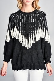 Tassel detail sweater. Contrast color detailing