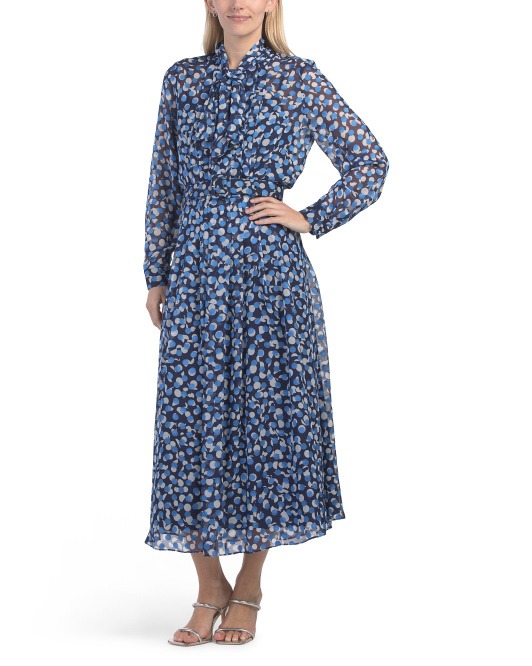 Hey fashion lovers! Get ready to twirl in style with the stunning Teri Jon Polka Dot Chiffon Tie Neck Belted Dress. This beauty is now just $200, slashed from $400! Can you say 50% off? It’s like finding a dollar in the couch cushions, but way cuter. The dress features a playful polka dot pattern and a flattering tie neck that says, "I've got my life together!" Plus, it comes with a chic belt to cinch that waist. And the best part? Shipping is free, so no sneaky extra costs trying to sneak up on you. Snag this deal and step out in style!Like this deal? Here are some like ones Women's Smocked-waist Floral-print Maxi Dress for $69 and this Osa Puff Sleeve Denim Shirtdress for $135. If you like deals and sales on Teri Jon Women's Dresses, follow us on Instagram to get notified of the latest deals! For more deals on Women's Dresses click here.