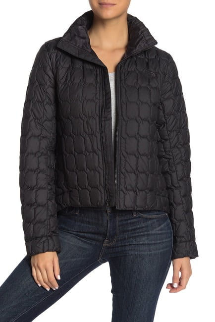 Hot!! Get this The North Face Thermo Jacket for only $119.97! That's 40% off regular price! Get it while it's hot! For more deals on Men click here.Stand-up collar - Long sleeves - Front zip closure - Side zip hand pockets - Embroidered logo detail - Quilted construction - Water repellent - Approx. 25" length (size S)