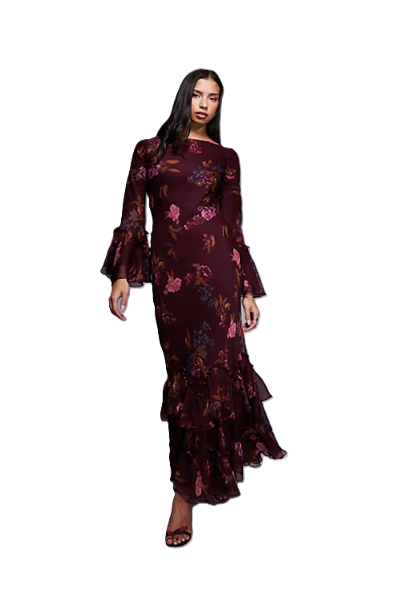 Hey, fashionista! Feeling like a queen without breaking the bank? Check out this stunning Tiered Ruffle Long Sleeve Chiffon Maxi Dress in Burgundy Floral Print. It’s all about those romantic vibes, right? Perfect for twirling your way through a wedding or a brunch that’s way too fancy for pancakes. This beauty is just $109, and with free shipping to top it off, you’re basically getting VIP treatment. Seriously, life is too short for boring dresses. Slip into this gorgeous maxi and watch heads turn-just don’t get used to all the attention! Grab this deal before it’s gone; you won’t regret it!Not what you're looking for? Check these out Puff Sleeve Embroidered Lace Maxi Dress for $60 and this Cece Long Sleeve Velvet Maxi Dress for $109. For more deals on Women's Dresses click here.