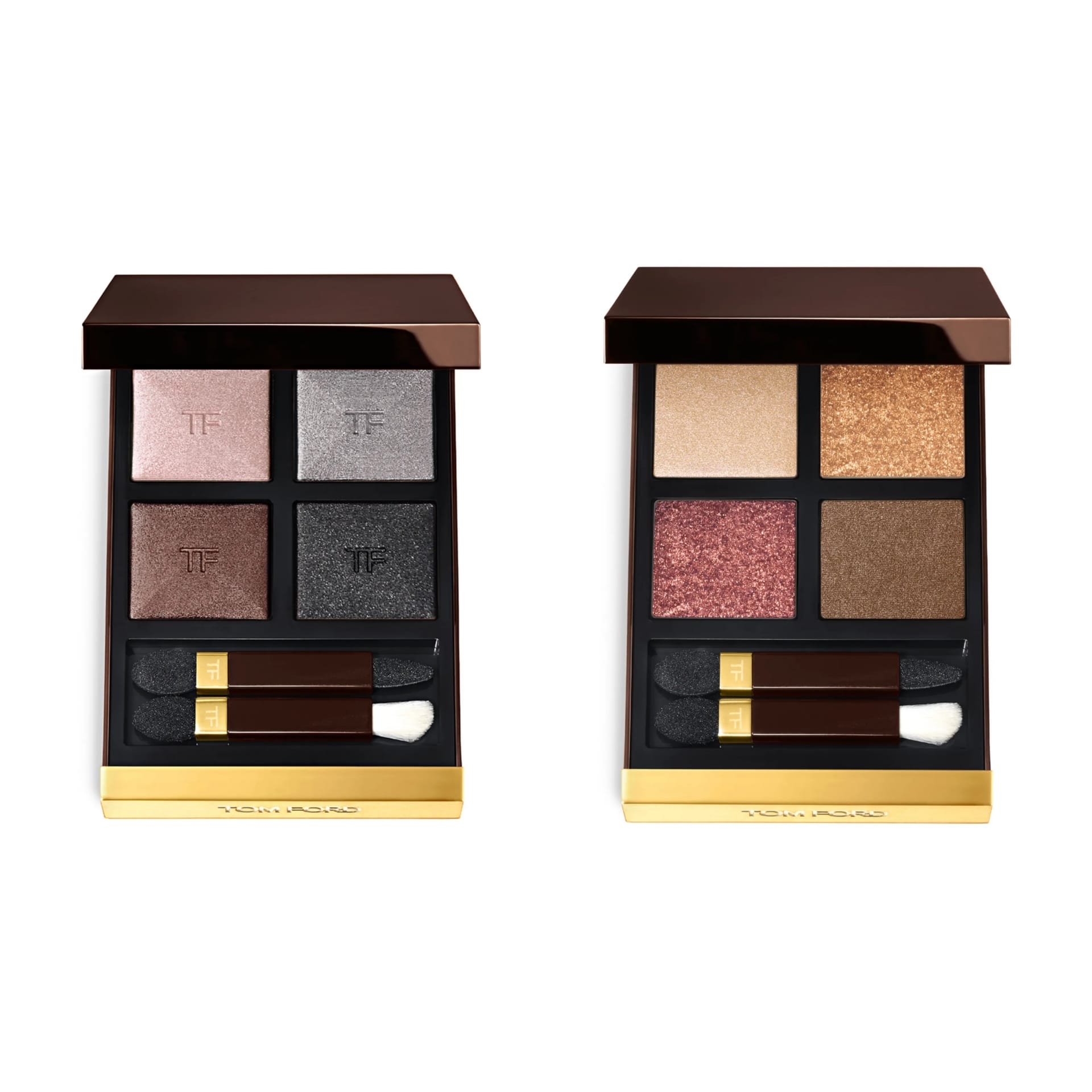 Four coordinated eyeshadows in sparkling to matte finishes designed to create soft to bold iconic Tom Ford eyes.