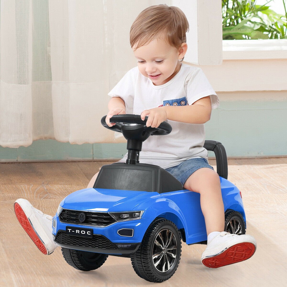 Super deal! Get this Topcobe Kids Ride On Push Car, Battery Powered Kids Electric Vehicles for only $53.58! That's 50% off regular price! Get it while it's hot! For more deals on Toys and Games click here.This kid-powered vehicle lets children adventure around the home or neighborhood while also developing crucial leg strength! Features a steering wheel that plays music and horn sounds. Includes push car handle at the back for when your little one wants to ride but their little legs are tired. There is a storage box under the seat plate