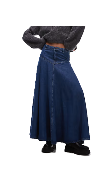 Hey, fashionista! Check out this TOPSHOP Denim A-line Full Skirt in Mid Blue- it’s a chic addition to your wardrobe that'll make your dreams of stylish comfort come true. Priced at just $72 (yup, that's 10% off from the original $80), it’s a sweet deal that won't break the bank. Picture yourself twirling in this dreamy number while sipping your favorite drink-so cute! And guess what? It ships free, so your wallet can stay just as happy as your closet. Don’t let this gem slip through your fingers; your wardrobe deserves this women's skirt upgrade!Here are some similar deals we think you'll enjoy Hutch Drop-waist Midi Skirt for $118 and this Vegan Leather Midi Skirt for $224. If you like deals and sales on TOPSHOP Women's Skirts, follow us on Instagram to get notified of the latest deals! For more deals on Women's Skirts click here.