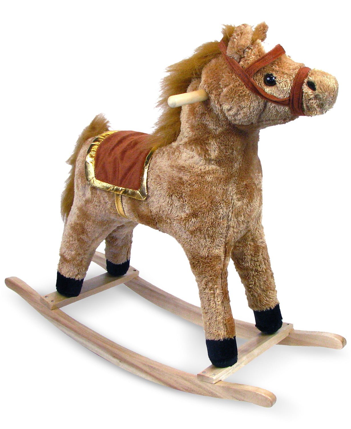 Whoa! For nonstop riding fun, rootin' tootin' cowpokes go to this Trademark Global Happy Trails plush rocking horse with handcrafted quality, a wood base and sturdy wood rockers.