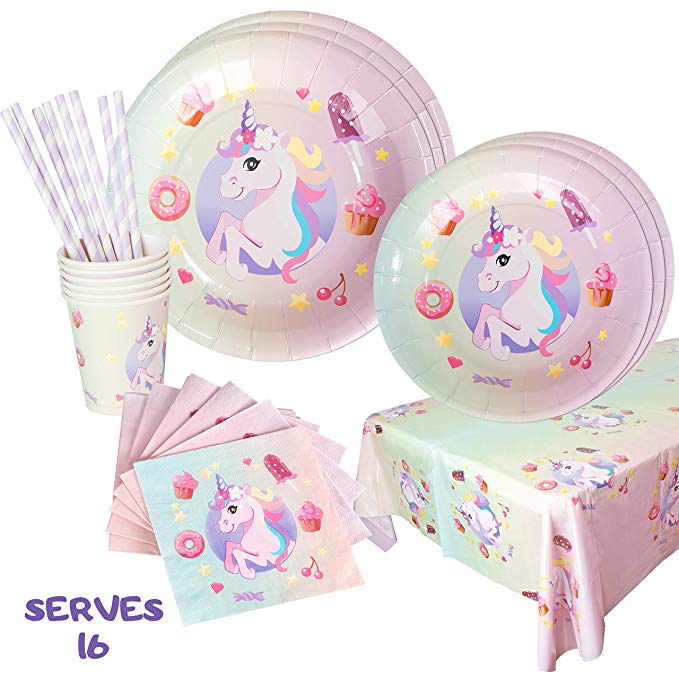 Great offer! Get this Unicorn Rainbow Party Dinnerware Supplies | Disposable Plates, Cups, Napkins Set – Serves 16 for only $13.89! That's 60% off regular price! Hurry - Only a few left! For more deals on Toys and Games click here.MAKE HER BIRTHDAY WISH COME TRUE: As magical as rainbows, this lovely and adorable unicorn dinnerware set will delight your little girl & match any party decorations.