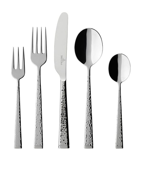 A hammered finish gives the Blacksmith flatware set from Villeroy & Boch a handcrafted feel, imparting a rustic, yet refined, simplicity. Fashioned in 18/10 stainless steel.