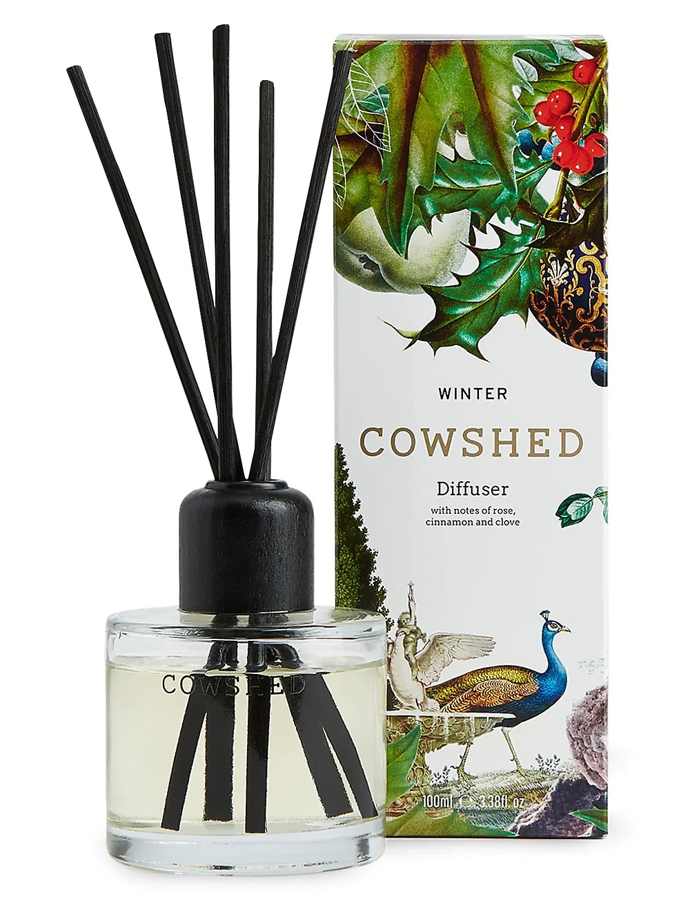 The Winter Fragrance Diffuser blends essential oils and seasonal spices to create a warming floral fragrance. The illustrative design features woodland animals and foliage inspired by the festive season at Babington House, the original home of Cowshed. 3.4oz. Made in UK.