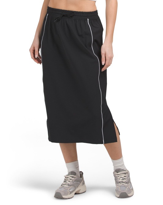 So, check this out! The Woven Mid Rise Track Skirt with Piping Detail is on sale for just $16. That’s right, folks, it was $20, so you’re not only getting a stylish skirt but also a solid 20% off. This skirt is perfect for those days when you want to look sporty but still feel comfy, like when you're breezing through errands or just chilling in the park. Pair it with your favorite sneakers, and you’ll be ready to take on anything from brunch dates to bank heists (okay, maybe that’s a stretch). Snag this deal while it lasts; your wardrobe will thank you later!Here are some similar deals we think you'll enjoy Elina Stripe Cotton Jersey Maxi Skirt for $98 and this Brynn Maxi Skirt for $128. For more deals on Women's Skirts click here.