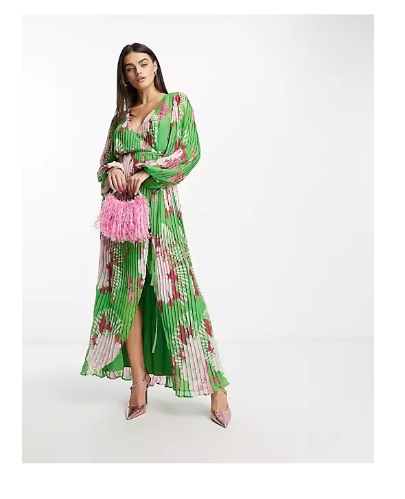 Awesome deal! Get wrap maxi dress with balloon sleeves with large green floral print for only $130! Plus, wrap maxi dress with balloon sleeves with large green floral print ships free! Get it before it sells out!