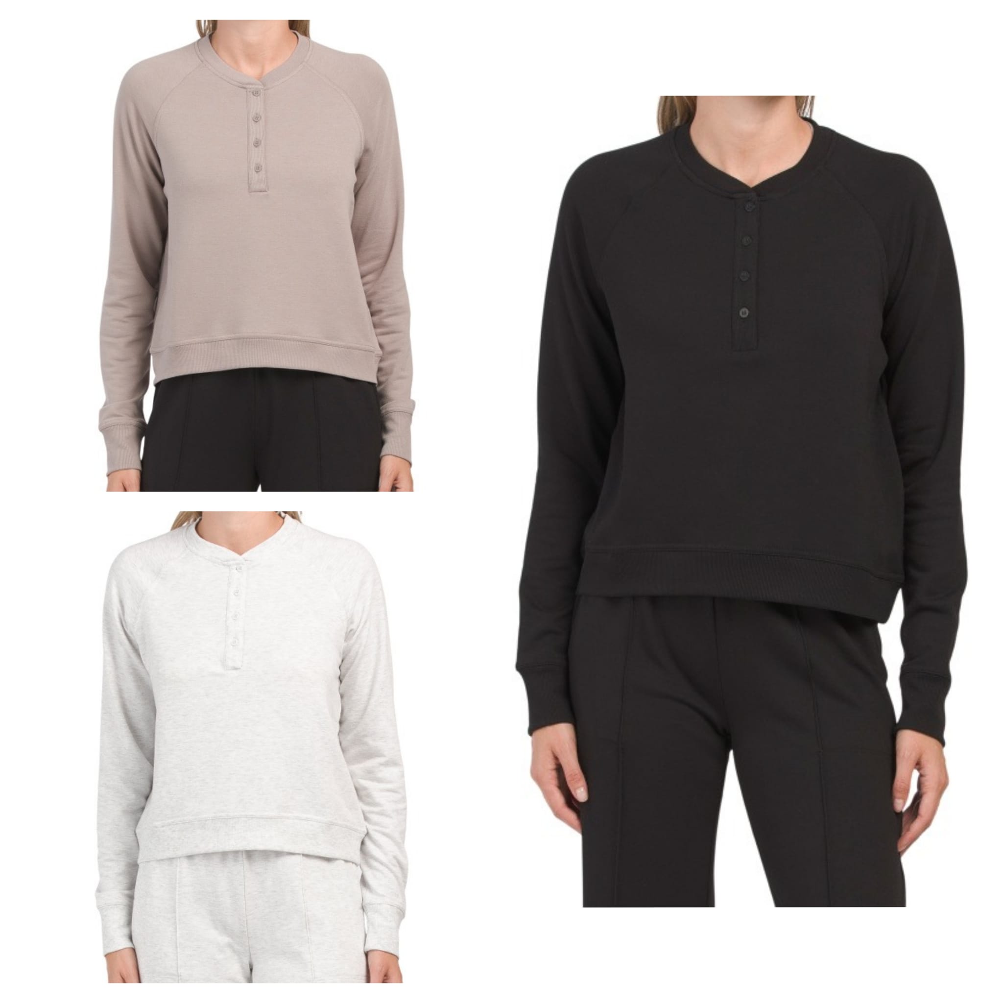 Great offer! Get this Terry Henley Raglan Cropped Crew Neck Sweatshirt for only $17! Shop now before it sells out! Not what your'e looking for? Check these out — Combination Sweatshirt for $46 and this NIC and ZOE Confetti Cardigan for $70. If you like deals and sales on YOGALICIOUS Women's Sweaters, follow us on Instagram to get notified of the latest deals! For more deals on Women's Sweaters click here.