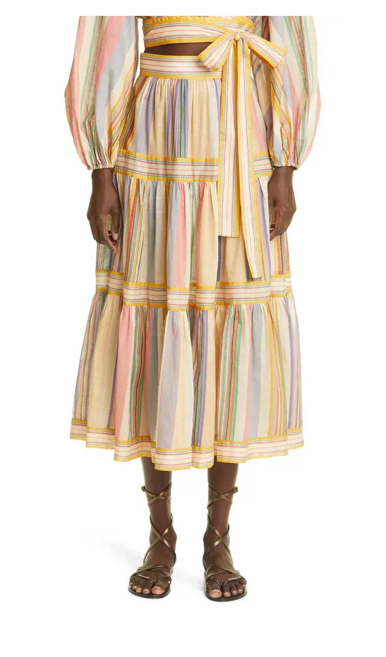 You'll love this deal! Get this Mae Stripe Tiered Midi Skirt size 10 for only $212! That's 60% off regular price! Plus, this Mae Stripe Tiered Midi Skirt size 10 ships free! Get it while it's hot! Here are some similar deals we think you'll enjoy — Denim Long Skirt for $70 and this Long Denim Skirt with Seams for $80. If you like deals and sales on Zimmermann Women's Skirts, follow us on Instagram to get notified of the latest deals! For more deals on Women's Skirts click here.