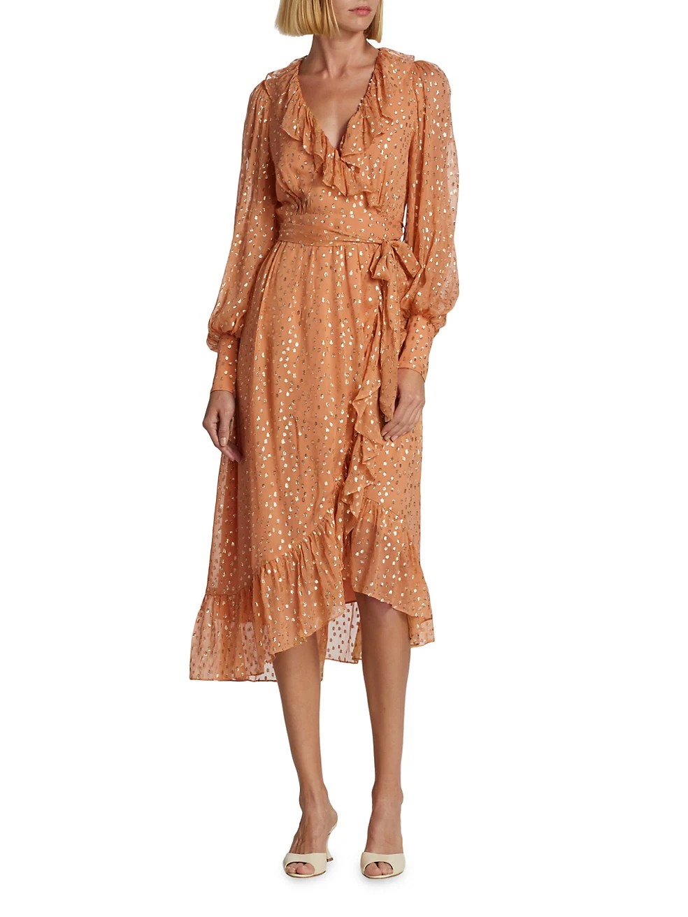 We know you'll love this! Get this Metallic Dot Wrap Midi-Dress for only $251! That's 67% off regular price! Plus, this Metallic Dot Wrap Midi-Dress ships free! Hurry - Only a few left! Here are some similar deals we think you'll enjoy — Donna Morgan Print Belted Long Sleeve Maxi Shirtdress for $148 and this Floral Maxi Dress for $298. If you like deals and sales on Zimmermann Women's Dresses, follow us on Instagram to get notified of the latest deals! For more deals on Women's Dresses click here.