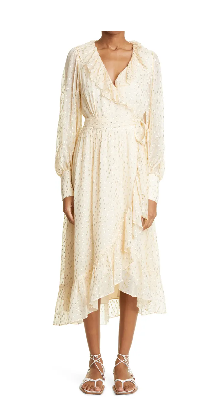 Hot!! Get this Ruffle Long Sleeve Silk Blend Fil Coupé Wrap Dress for only $225! That's 70% off regular price! Plus, this Ruffle Long Sleeve Silk Blend Fil Coupé Wrap Dress ships free! Run! Get it before it's too late! Want more? Here are some similar deals — Vince Forsynthia Floral Satin Midi Dress for $187 and this Floral Flutter Sleeve Midi Dress for $60. If you like deals and sales on Zimmermann Women's Dresses, follow us on Instagram to get notified of the latest deals! For more deals on Women's Dresses click here.